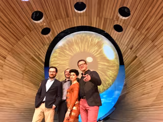 Esta estructura estática alberga en su interior una gran esfera de seis metros de diámetro con el tejido de un globo aerostático, que tiene un proyector en su interior y sube y baja sobre las cabezas de los intérpretes.