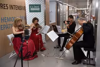 El cuarteto de cuerda encargado del concierto ha estado formado por las violinistas Eva Pyrek y Kalina Macuta, el violista Frank Tollini y el violonchelista Cristoforo Pestalozzi; y ha contado con la presencia del director general del hospital, el doctor Josep Maria Campistol, y el director general del Gran Teatre del Liceu, Valentín Oviedo, que han dirigido unas palabras de agradecimiento a los sanitarios.