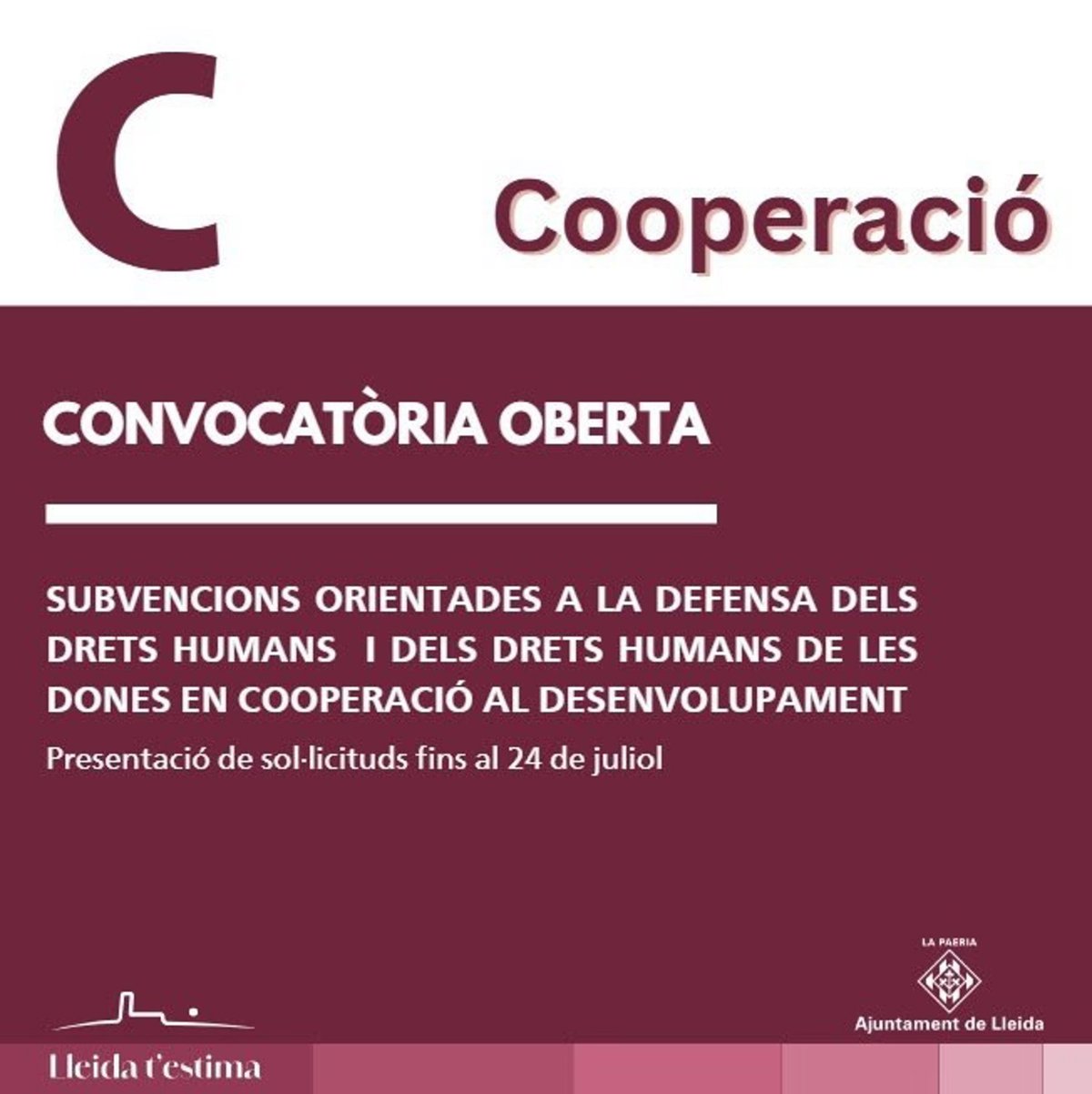La Paeria de Lleida ha abierto la convocatoria de subvenciones a las ONGD y entidades de la ciudad que quieran presentar proyectos de cooperación y defensa de los derechos humanos, con un presupuesto de 175.823,40 euros, ha informado el consistorio en un comunicado este domingo.