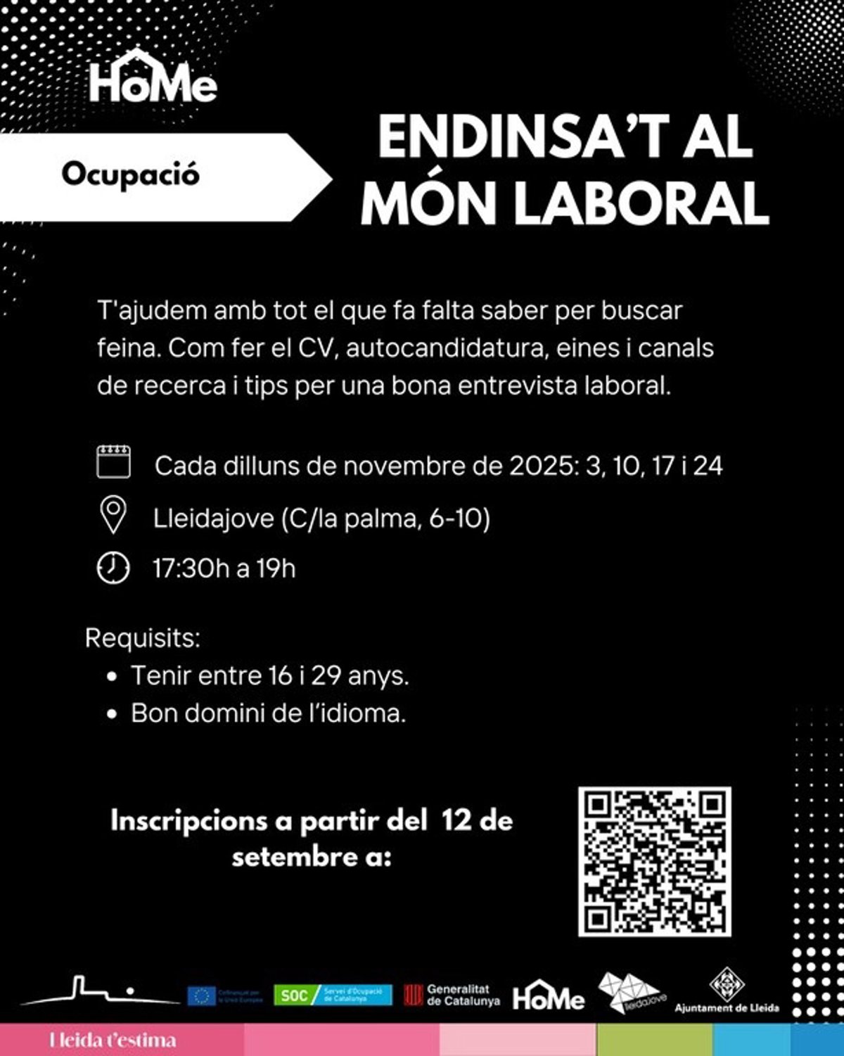 La Paeria de Lleida ha abierto la inscripción a nuevas actividades para promover la ocupación de jóvenes de 16 a 29 años, con dos sesiones de Job Dating para interesados en trabajar en el sector del deporte y el ocio.