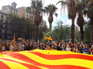 Entre los cánticos que se suceden entre los manifestantes figuran 'Els carrers seran sempre nostres' e 'Independència', en un ambiente festivo.