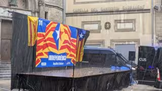 La lluvia ha impedido celebrar este jueves al mediodía el acto convocado por la Assemblea Nacional Catalana (ANC) junto con la Comissió Independentista Fossar de les Moreres por la Diada.