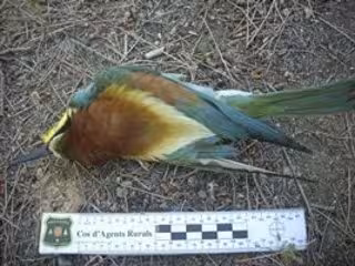 Miembros del cuerpo de Agentes Rurales de la Generalitat han pillado 'in fraganti' a un apicultor relacionado con una importante empresa apícola de Aragón mientras manipulaba veneno para matar a abejarucos, un tipo de pájaro protegido que come abejas, en diversas zonas de las comarcas del Segrià y La Noguera (Lleida).