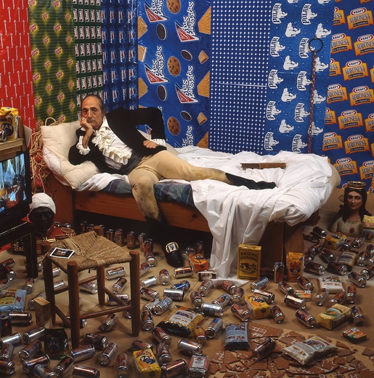 La obra 'Santa Comida', de la Colección Macba, habla directamente sobre la reivindicación del cantante cubano de boleros que criticaba en su letra la imposición de los pintores y la Iglesia de pintar ángeles canónicamente bellos, cuando los negros "también los quiere Dios".