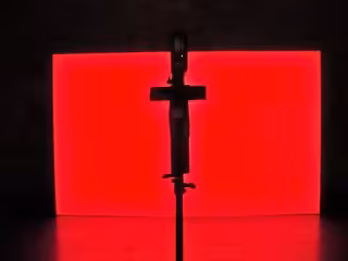 Llama también la atención 'El resplandor de la Santa Conjunción aleja a los demonios' como una caja de luz roja, guiño a la película 'Poltergeist', que responde con efectos sonoros de filme de terror a la presencia de los flashes de cámara.