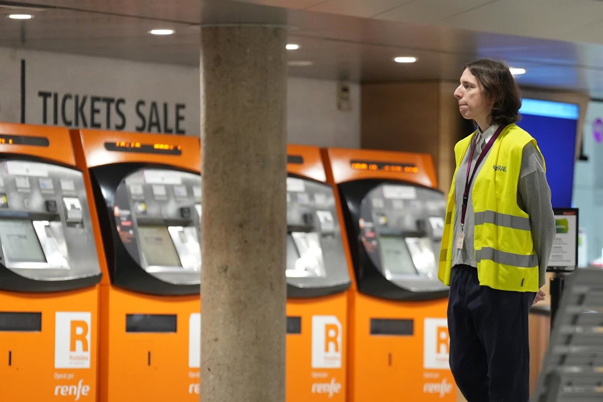 Una persona en la Estación de Passeig de Gràcia mientras continúa la suspensión del servicio de Rodalies. - David Zorrakino - Europa Press