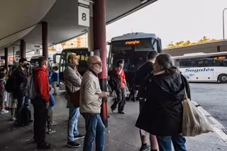 Varias personas esperan autobuses alternativos al macrocorte en la línea R3 de Rodalies, a 7 de octubre de 2025, en Barcelona - Alberto Paredes - Europa Press