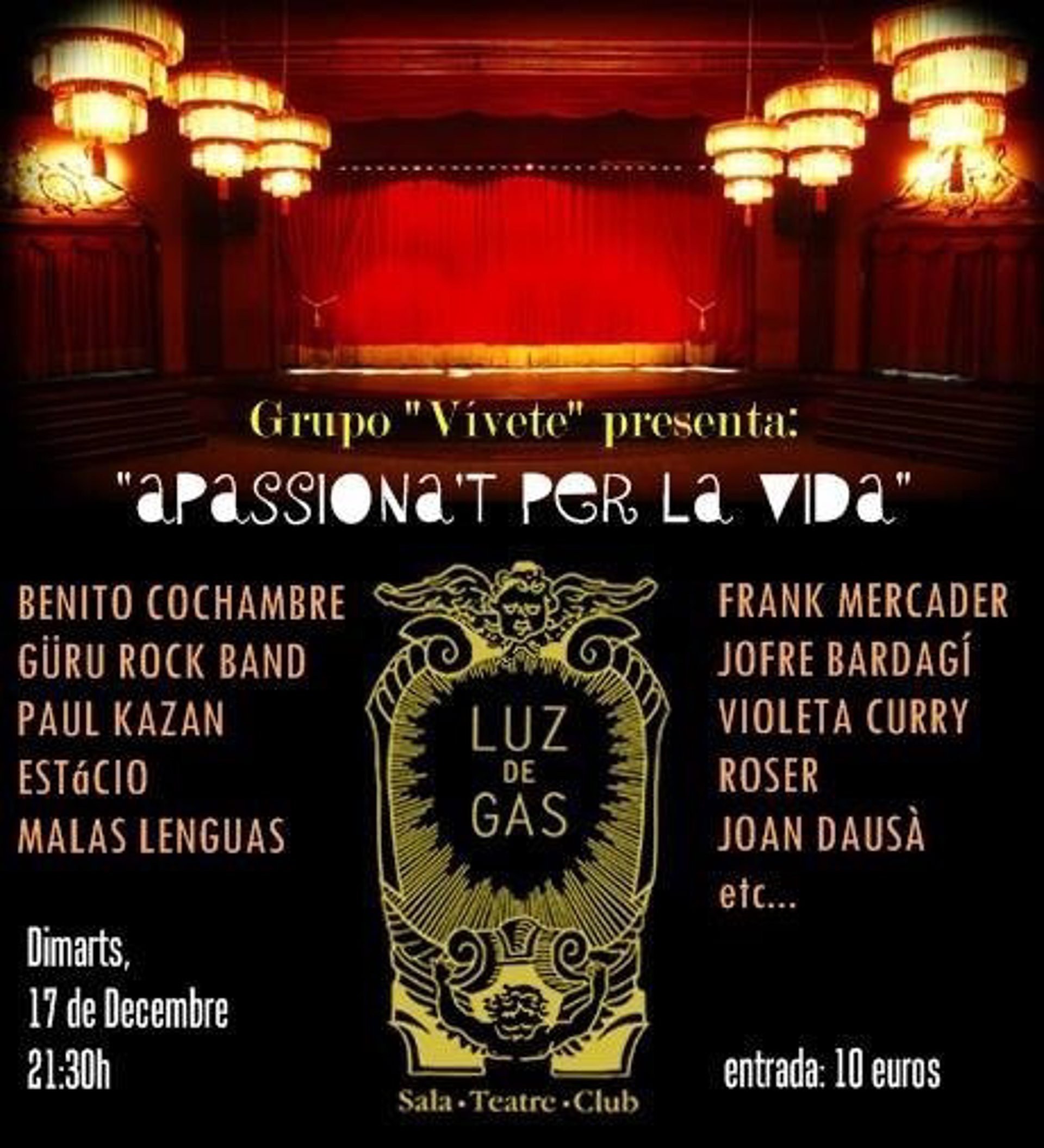 La banda de Rock&Roll Malas Lenguas actuará junto con otras formaciones en la Sala Luz de Gas el próximo 17 de diciembre en el concierto benéfico 'Apassiona't per la vida', que destinará los fondos recaudados a los proyectos Educo y a la Obra Social del Hospital Sant Joan de Déu, en Esplugues de Llobregat (Barcelona).