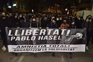 Sucesos.- La manifestación de Lleida llega al perímetro de la cárcel en la que está Hasél - Adri Ropero - Europa Press