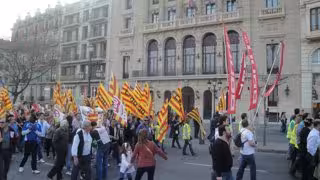 Cerca de 8.000 personas, según la Policía Local, han participado este jueves en Lleida en la manifestación contra la reforma laboral encabezada por la Plataforma contra la Dictadura Financiera, en la que los sindicatos han elevado la participación a 10.000.