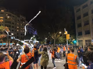 Los manifestantes de los CDR se concentran desde las 20.15 horas de este miércoles ante la Conselleria de Interior de la Generalitat, donde han lanzado papel de váter por encima del cordón colocado por los Mossos d'Esquadra con vallas.