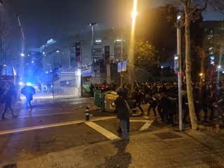 Incidentes con manifestantes de Tsunami Democrtic en la zona del Camp Nou durante la celebración del Clásico, el 18 de diciembre de 2019. - EUROPA PRESS