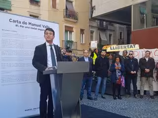 Valls ha tenido que interrumpir la lectura de la carta momentáneamente porque se ha cortado el sonido y, al terminar, se ha dirigido a los manifestantes y les ha lanzado un beso, después de advertir desde el atril: "Los pitidos, los insultos y las amenazas no me dan miedo".