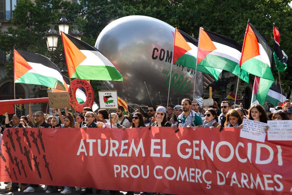 La pancarta de la cabecera mostraba la leyenda 'Paremos el genocidio en Palestina. Basta de comercio de armas con Israel'.