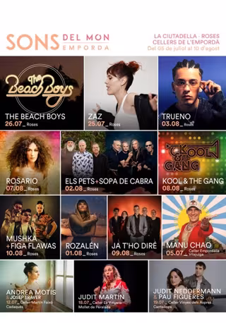 Manu Chao abrirá el 18 festival Sons del Món, que se celebrará del 5 de julio al 10 de agosto en La Ciutadella de Roses (Girona) y en bodegas de la DO Empordà, en su edición "más internacional" con un cartel que incluye a The Beach Boys, Trueno, Zaz y Kool and The Gang.