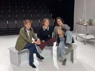 La directora Victoria Szpunberg, la actriz Maria Rodriguez Soto y la escritora Eva Baltasar, en la presentación de la adaptación teatral de 'Permagel' - EUROPA PRESS