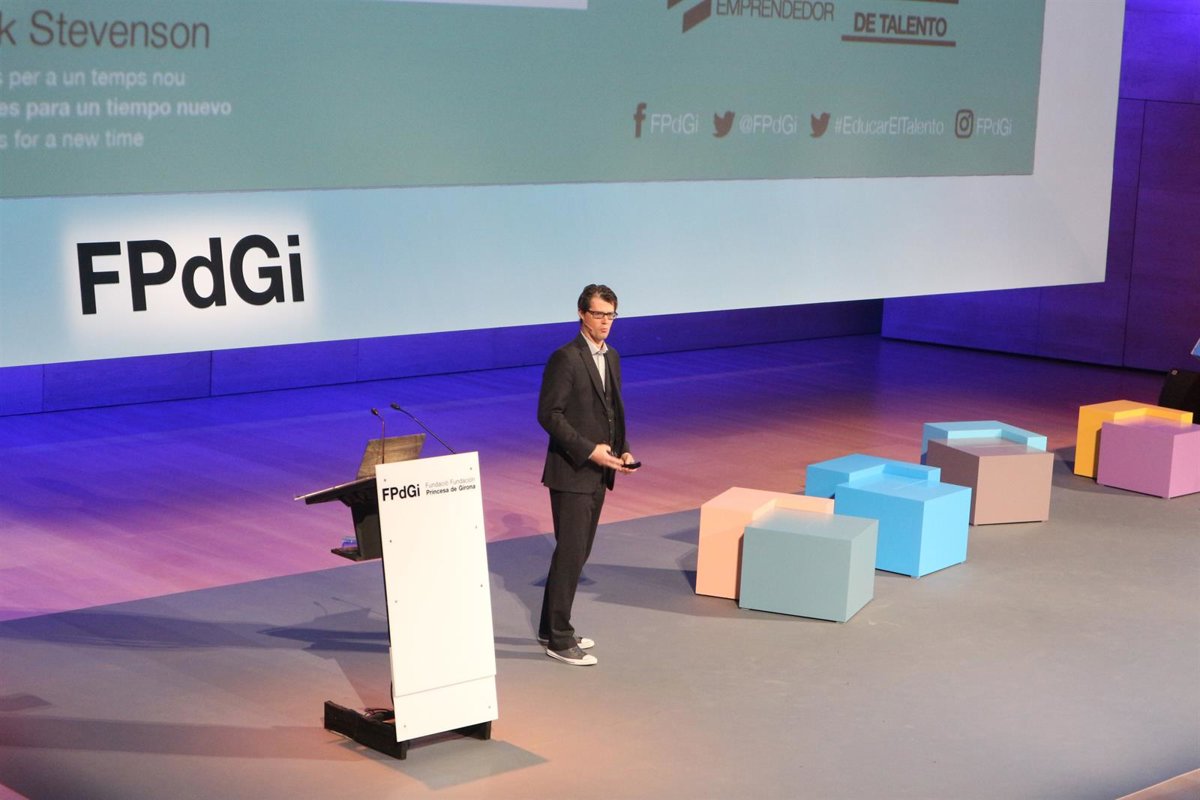 El escritor, cómico y excantante inglés Mark Stevenson ha defendido su "liga de optimistas pragmáticos", un concepto acuñado por él miso y que resume en el acrónimo 'Lopo', en la conferencia inaugural de la IV Jornada Fundació Princesa de Girona (FpdGi) 'Cómo educar el talento' ante más de 1.000 jóvenes y profesores.