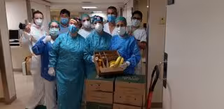 Sanitarios del Centro Teknon de Barcelona, recibiendo cajas de fruta de Refruiting - REFRUITING