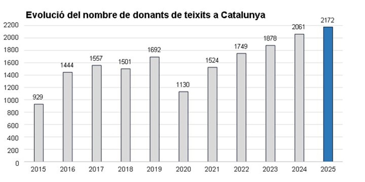 Este 2025 se registraron 2.172 donantes (un 5,4% más que el año anterior) y, aunque la evolución de los donantes se mantiene estable desde hace años, la concienciación social de la importancia de donar los tejidos después de la muerte "aún es baja".