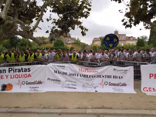 Los empleados han clamado durante la concentración consignas como 'Prysmian mercenarios', 'Montcada y Manlleu en lucha' y 'Las empresas no se cierran', además de hacer sonar la canción el 'Vals del obrero', del grupo Ska-P.