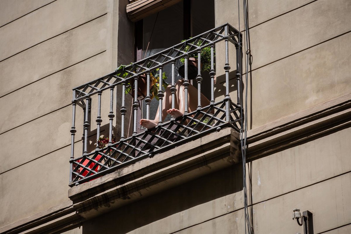 Una persona toma el sol en su balcón durante el tercer día de desconfinamiento de adultos y durante la fase 0 de la desescalada, en Barcelona/Catalunya (España) a 4 de mayo de 2020. - David Zorrakino - Europa Press - Archivo
