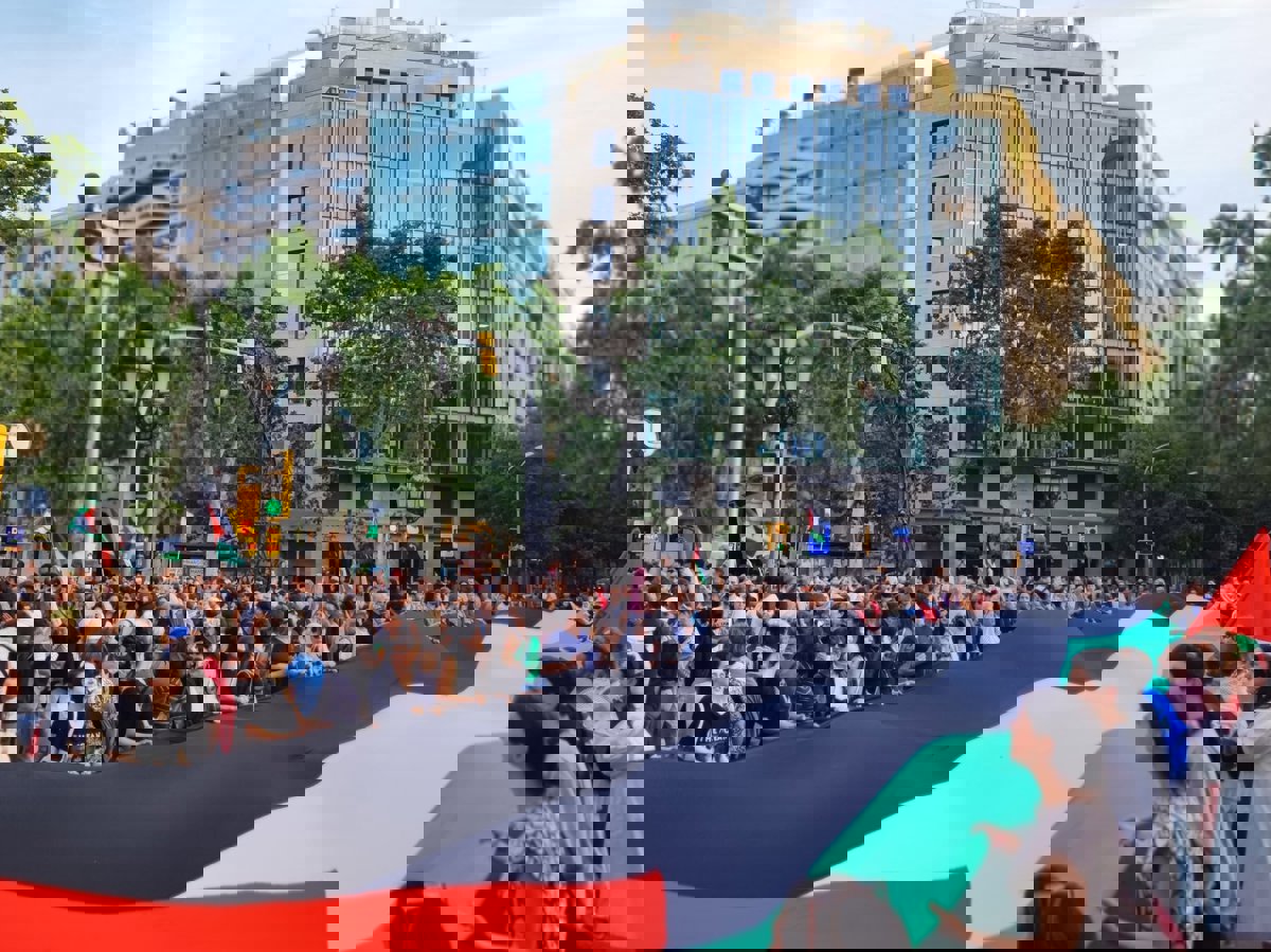 Los asistentes han coreado cánticos como 'Israel asesina, Europa patrocina', 'Israel, asesino del pueblo palestino' y 'Estado sionista, Estado terrorista', y han ondeado banderas palestinas, alguna 'estelada' y pañuelos palestinos.