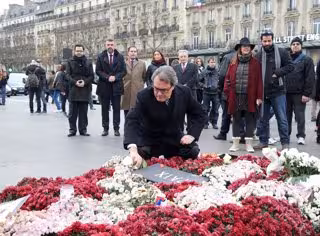 Mas ha puesto una rosa ante la sala Bataclan y después ha hecho una ofrenda en la plaza de la República, donde le han acompañado el conseller de Territorio, Santi Vila; el secretario de Exteriores del Govern, Roger Albinyana; el director de Asuntos Multilaterales, Manuel Manonelles, y el delegado de la Generalitat en Francia y Suiza, Martí Anglada.