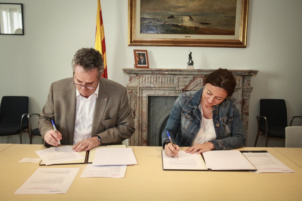 El conseller de Interior de la Generalitat, Joaquim Forn, y la presidenta de la Diputación de Barcelona, Mercè Conesa, han firmado este lunes un convenio para que 50 vehículos de los Mossos d'Esquadra en esta demarcación lleven dispositivos de desfibriliación automática (Dea).