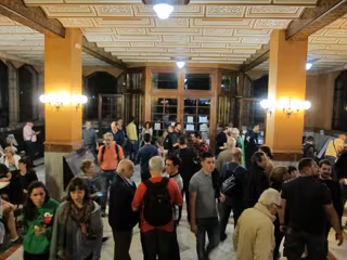 Medio millar de personas se concentran a las 5.30 horas de la madrugada en la Escola del Treball de Barcelona, el punto electoral más grande de la capital catalana, donde han pasado la noche 250 personas y se espera que haya 18 mesas para votar en el referéndum de este domingo.