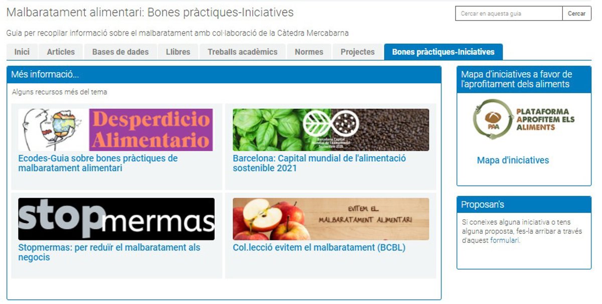 Página web de la biblioteca digital sobre desperdicio alimentario creada po Mercabarna y la Universitat Politcnica de Catalunya (UPC) - MERCABARNA Y UPC