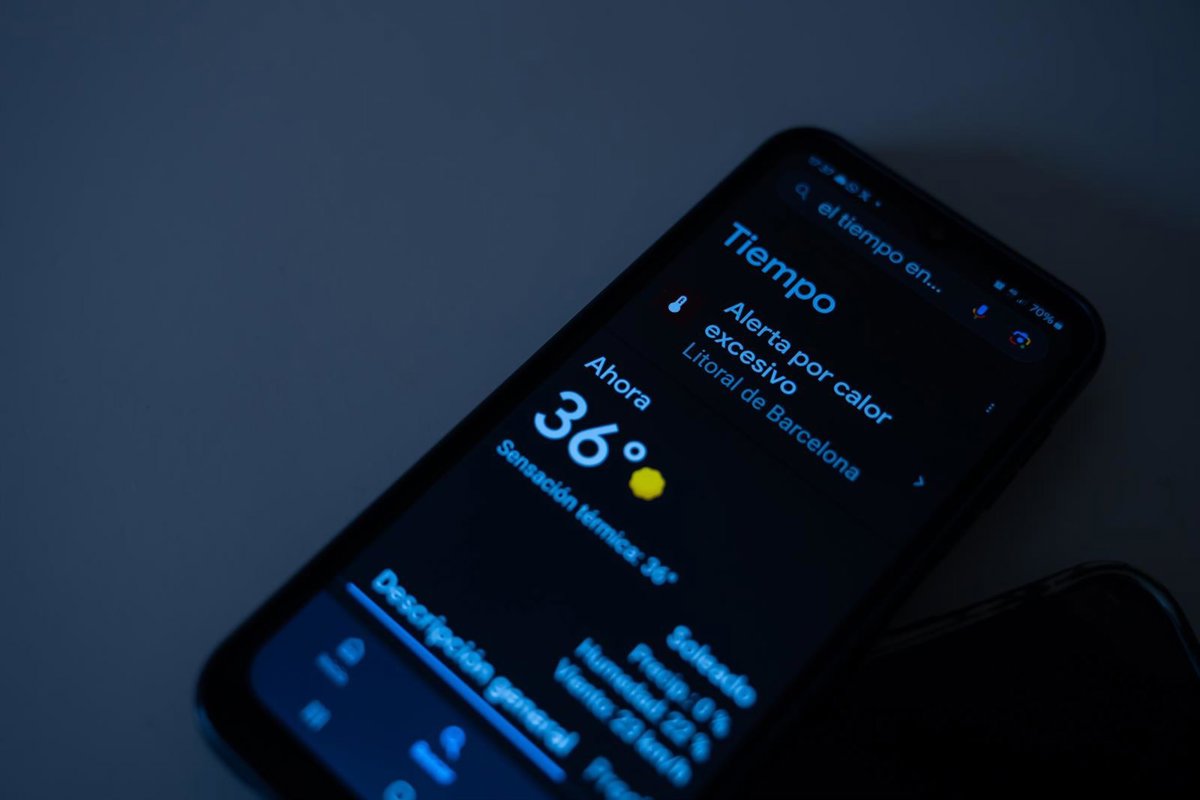 Archivo - Aviso de calor en un dispositivo móvil, a 31 de julio de 2024, en Barcelona, Catalunya (España). La ola de calor que afecta esta semana al país alcanza este miércoles, 31 de julio, su punto álgido y pone en aviso rojo, naranja o amarillo a casi - David Zorrakino - Europa Press - Archivo