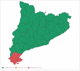 El Servei Meteorològic de Catalunya (Meteocat) ha emitido un aviso por tiempo violento en las comarcas del Montsià y Baix Ebre (Tarragona), ante la previsión de fuertes lluvias este domingo.