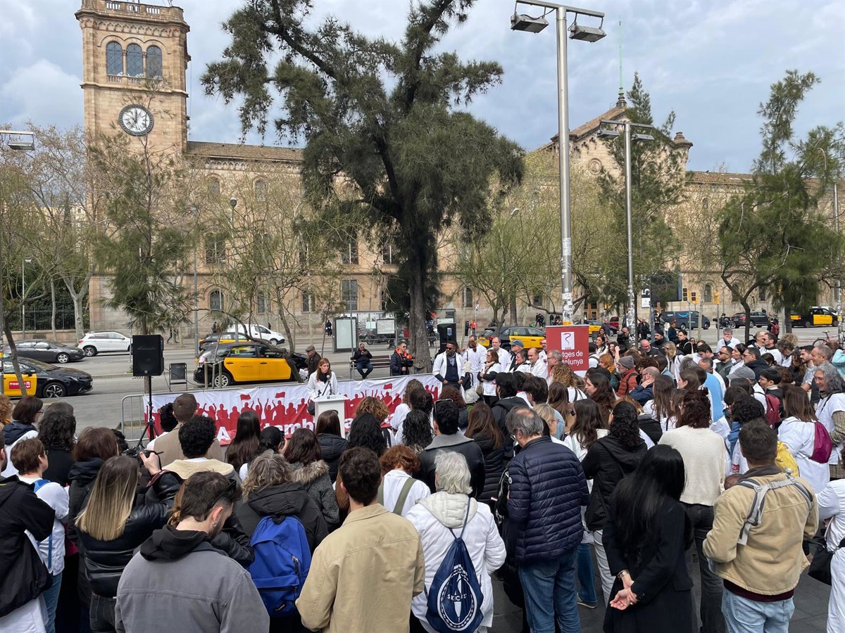 Concentración de médicos en un 'speakers corner' organizado por MC en motivo de la huelga en la plaza Universitat de Barcelona. - METGES DE CATALUNYA