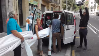 Los encargados de sacar el material lo han depositado en al menos seis coches que estaban aparcados frente a la sede, entre ellos, han contado con la solidaridad, de dos taxistas.