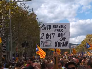 Se han leído pancartas como 'Rajoy me voy' y 'Referéndum. Democracia' y la bandera protagonista es la 'estelada', la independentista catalana, aunque también se han visto 'senyeres' y 'ikurriñas' vascas.