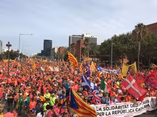 Miles de ciudadanos llenan desde pasadas las 15.00 horas los 38 tramos de la manifestación convocada en la avenida Diagonal de Barcelona a la espera de que a partir de las 17.14 horas comience la movilización organizada la ANC con apoyo de Òmnium bajo el lema 'Fem la República catalana' ('Hagamos la República catalana').