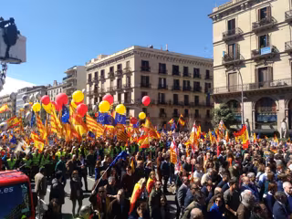 La movilización, bajo el lema 'Ahora más que nunca, seny' y convocada por SCC, ha comenzado en el cruce entre la avenida Marqués de l'Argentera y Pla de Palau, y ha terminado frente a la Estación de Francia, donde se ha instalado un escenario y ha habido varios parlamentos.