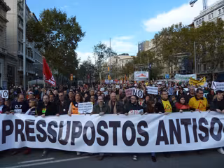 Miles de persones han salido a las calles de Barcelona para protestar contra los presupuestos de 2014, los recortes en servicios sociales, la precariedad laboral y la reforma de las pensiones.