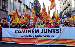 Tras una pancarta principal con el lema 'Caminem Junts! Respeto y Convivencia', los manifestantes se han citado poco antes de las 12 en la Via Laietana para, desde allí, emprender la marcha hacia la cercana plaza de Sant Jaume, a las puertas de la Generalitat y el Ayuntamiento.