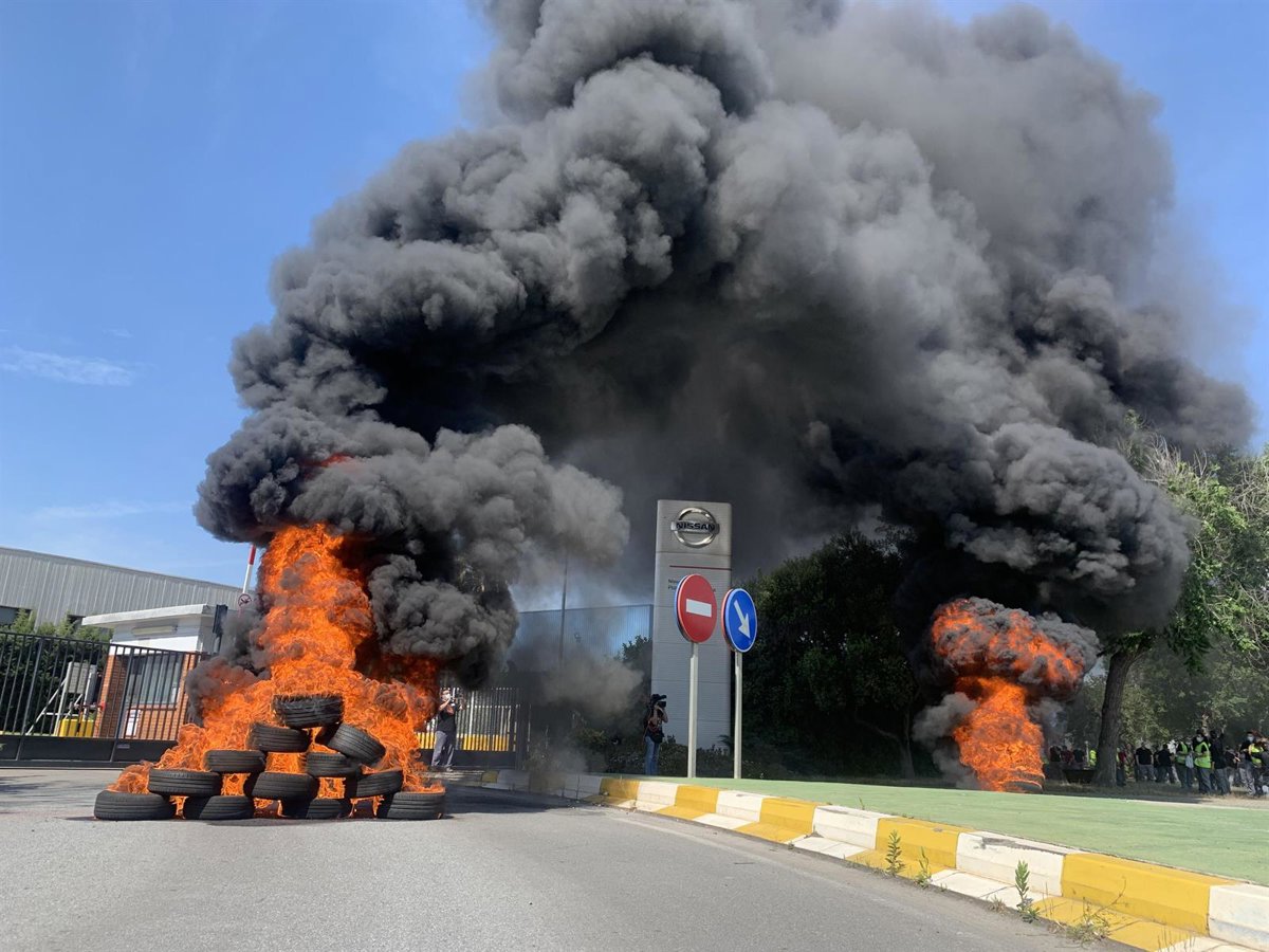 La movilización se enmarca en un paro de producción de dos horas este mismo viernes en las tres plantas de Nissan afectadas por el cierre en Barcelona, la de la Zona Franca, Montcada i Reixac y Sant Andreu de la Barca (Barcelona).