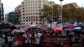 BARCELONA, 26 Nov. (EUROPA PRESS) - Mil médicos y trabajadores de la atención primaria según la Guardia Urban, y más de un millar según los organizadores, se han manifestado la mañana de este lunes en Barcelona, coincidiendo con la primera jornada de la huelga convocada en ambulatorios del Institut Català de la Salut (ICS) y centros concertados esta semana, bajo el lema 'Atención primaria digna y respetada'. La concentración se ha iniciado bajo la lluvia sobre las 11.00 horas ante la sede del ICS, con el apoyo de Marea Pensionista y Marea Blanca, cortando la Gran Via y la calle Balmes, y se han gritado consignas como 'Fora retallades dels nostres CAPs' --centros de atención primaria--, 'Canya canya canya, que l'ICS m'escanya', y llamamientos a los paros generales. Convocada por Metges de Catalunya (MC) y CGT (a través de Rebel·lió Atenció Primària), más de 5.700 facultativos de la primaria del ICS y 10.000 sanitarios de la sanidad concertada --incluyendo hospitales-- están llamados a la huelga que durará hasta el viernes, y que según el comité de huelga de primaria de MC se ha iniciado con entre un 90% y un 100% de seguimiento en los CAP. Minutos antes de las 12.00, centenares de concentrados han entrado en el ICS, con pancartas, megáfonos y pitos, y han gritado consignas como 'Argimon, baixa al nostre món' --dirigiéndose al director gerente, Josep Maria Argimon--, 'Més recursos, menys discursos' y 'Vaga vaga vaga, la Primària ja no traga', bajo la mirada de los trabajadores del ICS. Veinte minutos después de irrumpir en la sede del ICS, los facultativos han salido y han iniciado una manifestación de batas blancas avanzando por la Gran Via dirección Besòs hasta paseo de Gràcia, por donde han subido dirigiéndose a la sede de la patronal Unió Catalana d'Hospitals (La Unió). El presidente de atención primaria de MC, Javier O'Farrill --miembro del comité de huelga y médico de familia--, ha explicado en declaraciones a Europa Press que su objetivo básico es revertir el concepto actual de gestión, "que se basa en cantidad", y ante lo que piden más calidad. Reclaman poder contar con 12 minutos para atender cada visita, porque actualmente dedican cinco o seis: "Este tiempo provoca que en los pacientes aumente el riesgo en la asistencia y que todos los compañeros vayamos enfermando", ya que se trata de un colectivo en el que anteriormente apenas había bajas, y han aumentado mucho tras los recortes, ha dicho. Ha relatado que en las reuniones realizadas con el ICS --una de ellas la tarde de este domingo que se alargó hacia la medianoche-- han puesto como "línea roja" poner un límite de 28 visitas diaria por facultativo, que actualmente supera los 40 en algunas ocasiones. Ha detallado que no están pidiendo atender a menos personas, sino que se computen los minutos reales y adecuados que hay que dedicar a cada atención: "Queremos atenderlos con dignidad, mirarles a la cara", y ha negado que vaya a afectar la accesibilidad, ya que no se van sin atender hasta el último paciente. "No podemos tener visitas ilimitadamente", ha añadido la miembro del comité Carolina Roser, que ha criticado que la atención primaria está al límite tras perder durante la crisis unos 900 médicos y sufrir recortes, ante una población que cada vez es más compleja y demandante, lo que aumenta la carga. PEDIATRAS, ODONTÓLOGOS Y GINECÓLOGOS Reclaman contratar a más médicos, aunque admiten: "El gran problema es que ahora no hay gente" para contratar como médicos de familia, así como pediatras, porque las malas condiciones laborales han hecho que los médicos se fueran a otros países u optaran por otras especialidades, ha dicho Roser. En representación de los ginecólogos, la miembro del comité de huelga Dolors Botey ha detallado a Europa Press que este colectivo reclama un cupo de 8.800 mujeres por médico y contratar a más ginecólogos en la atención primaria, ya que la población atendida ha aumentado pero se han perdido un 30% de los facultativos, y señala que la precariedad es del 63%. Los odontólogos comparten las demandas de los médicos -como el tiempo de visita y el aumento de facultativos-- y se suma que a pesar de ser una atención que tiene que ser a cuatro manos, no tienen en todas las visitas un auxiliar de consulta y tienen que visitar solos, ha relatado el estomatólogo Josep Busquet -también del comité--. POBLACIÓN DE 17.000 PERSONAS Ha lamentado que son "el único colectivo al que no se paga el complemento de desplazamientos" en formaciones, y que tienen una población asignada de 17.000 personas, cuando calculan que debería ser de unas 11.000, a lo que se añade la actividad comunitaria, mientras que ha cifrado en cerca del 75% el seguimiento de la huelga en este colectivo. La tarde de este lunes se reunirá el sindicato con el ICS para abordar la situación en la primaria, y el sector de la sanidad concertada está también convocado a la huelga por MC --10.000 trabajadores de 53 hospitales, 86 ambulatorios, 50 sociosanitarios y 25 centros de salud mental-- ya que rechazan el convenio colectivo que firmó recientemente UGT, CC.OO. y Satse con las patronales, sin acuerdo de MC.