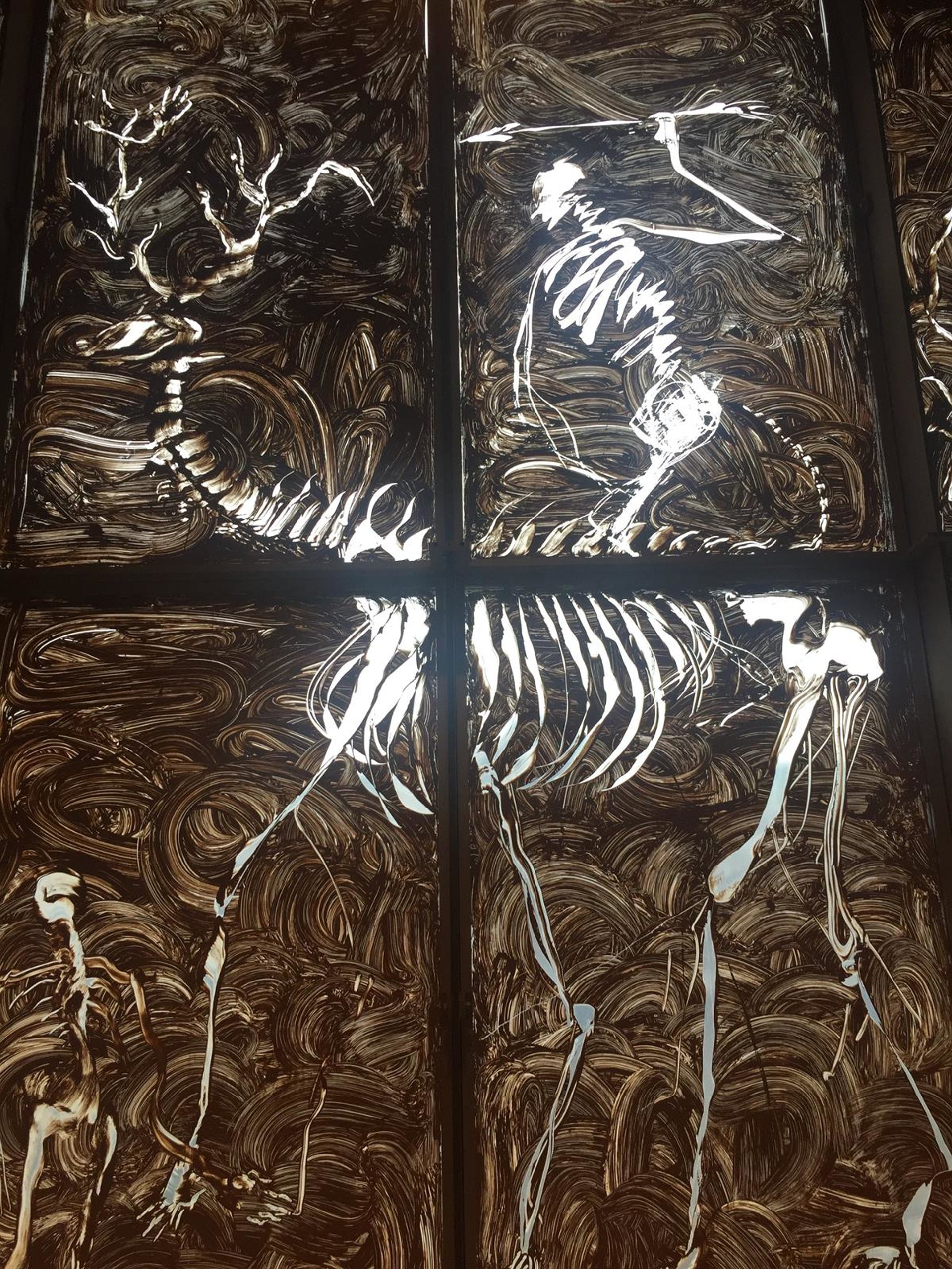 El fresco busca ser una obra viva y canviante, y en tanto que mural de barro y cristal producirá efectos diferentes en el interior de la biblioteca francesa según la luz que reciba del exterior.