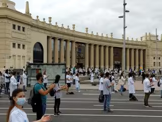 El sindicato Metges de Catalunya (MC), la organización responsable de la convocatoria de huelga, ha informado en un comunicado de que cerca de 500 MIR se han concentrado esta mañana en la plaza España de Barcelona para que las patronales y el ICS presenten una "propuesta aceptable".