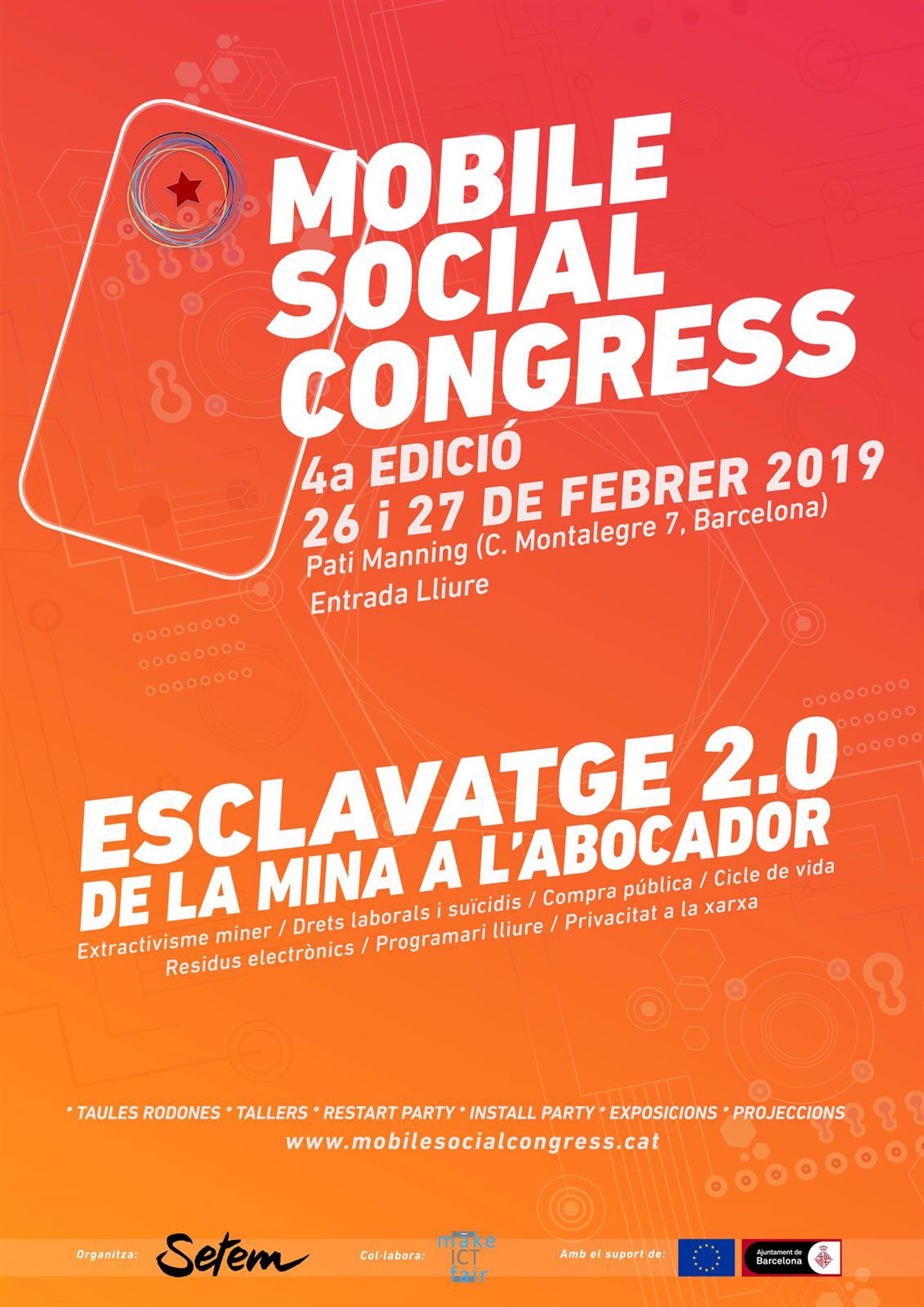 El Mobile Social Congress (MSC) 2019 abordará la "esclavitud moderna" que deriva de la industria electrónica en su cuarta edición, que se celebra el 26 y 26 de febrero en el Pati Manning y coincide con el Mobile World Congress (MWC) en Barcelona.