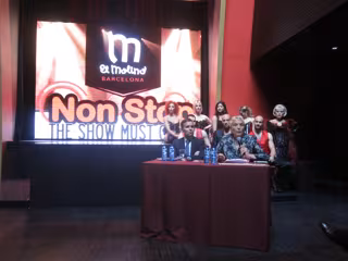 El acto en El Molino ha estado presidido por un fondo de pantalla en el que se podía leer 'Non stop. The show must go on' --Sin parar. El espectáculo debe seguir--, y Vázquez ha estado arropada por ocho artistas, entre los cuales la histórica vedette Merche Mar.