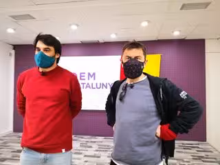 El portavoz de Podem Catalunya y diputado de los comuns en el Parlament, Lucas Ferro, y el con-fundador de Podemo Juan Carlos Monedero - EUROPA PRESS