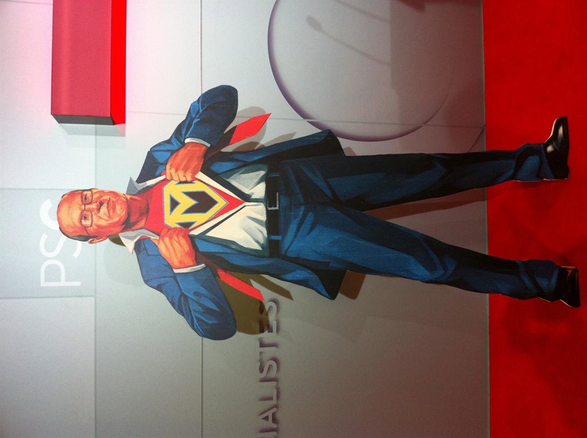 "El increíble hombre normal". Con este lema, se presenta al candidato, acompañado de una ilustración al más puro estilo de los cómics de superhéroes norteamericanos como 'Superman' y con una estética 'pop art'.