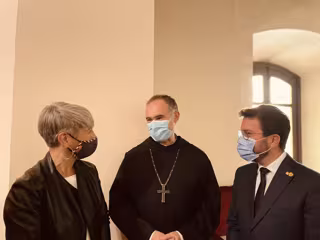 La consellera de Justicia, Lourdes Ciuró, el abad del Monasterio de Santa Maria de Montserrat, Manel Gasch, y el presidente de la Generalitat, Pere Aragons - GENERALITAT