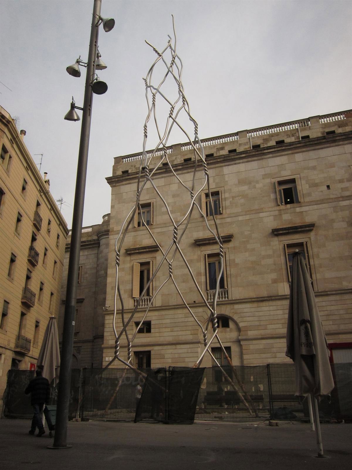 El monumento está formado por unas ramas de acero entrelazadas que forman una torre cilíndrica de unos 30 metros, rebasando la altura del edificio consistorial, y supone 630.000 euros de inversión, uno de los motivos que han hecho que se opongan vecinos y comerciantes.