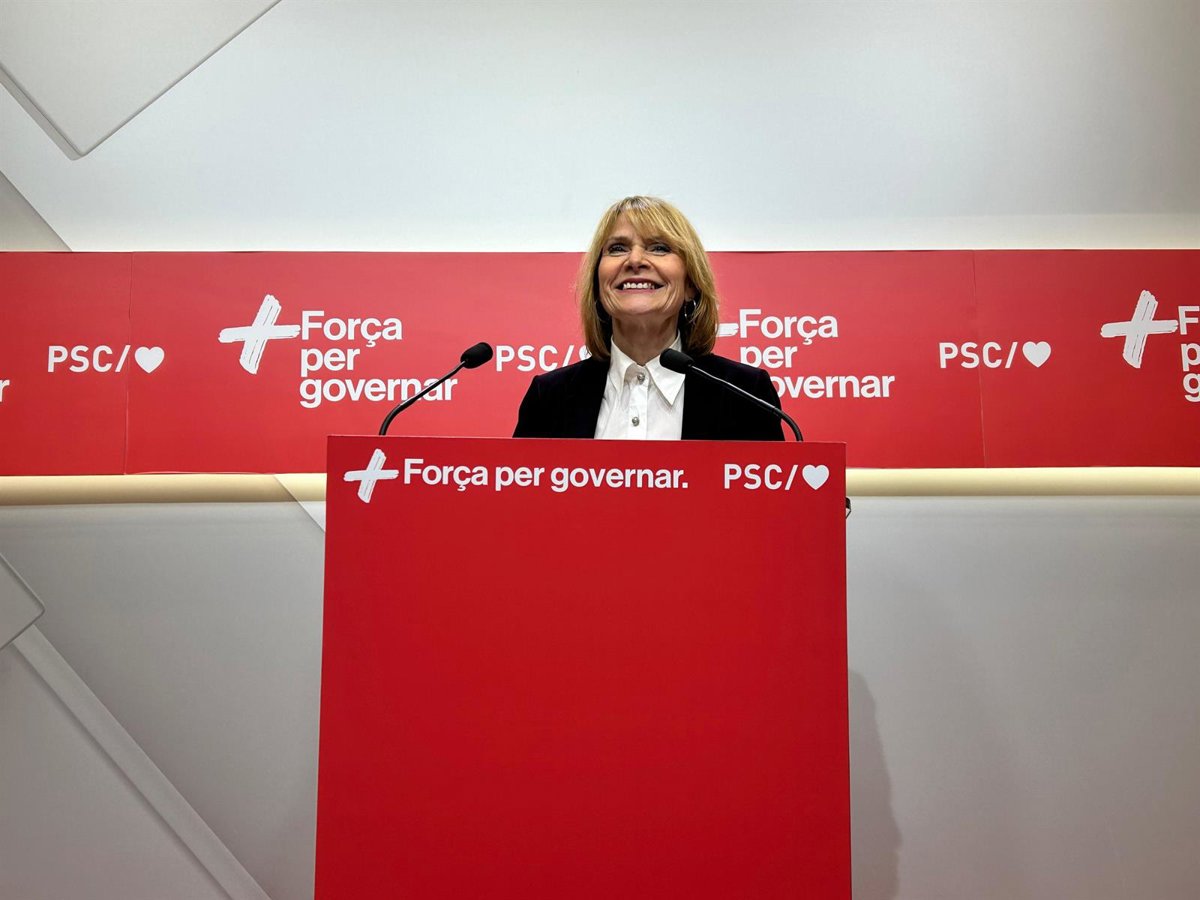 La viceprimera secretaria y portavoz del PSC, Lluïsa Moret, en una rueda de prensa en la sede del partido - EUROPA PRESS